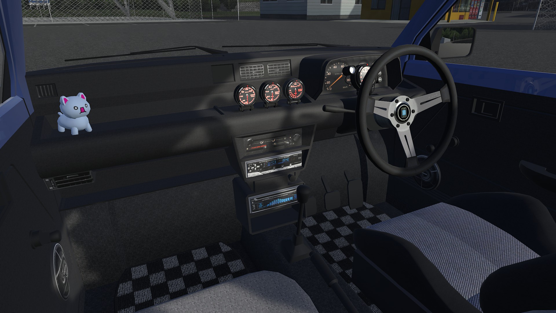 everything was modelled with correct scale in mind, so you shouldnt have to scale anything, aslong the dashboard headunit cutouts were modelled correctly. only thing that wasnt modelled to scale are the normal speakers, as these were allways sold in multiple sizes, so feel free to scale these to fit your needs haha