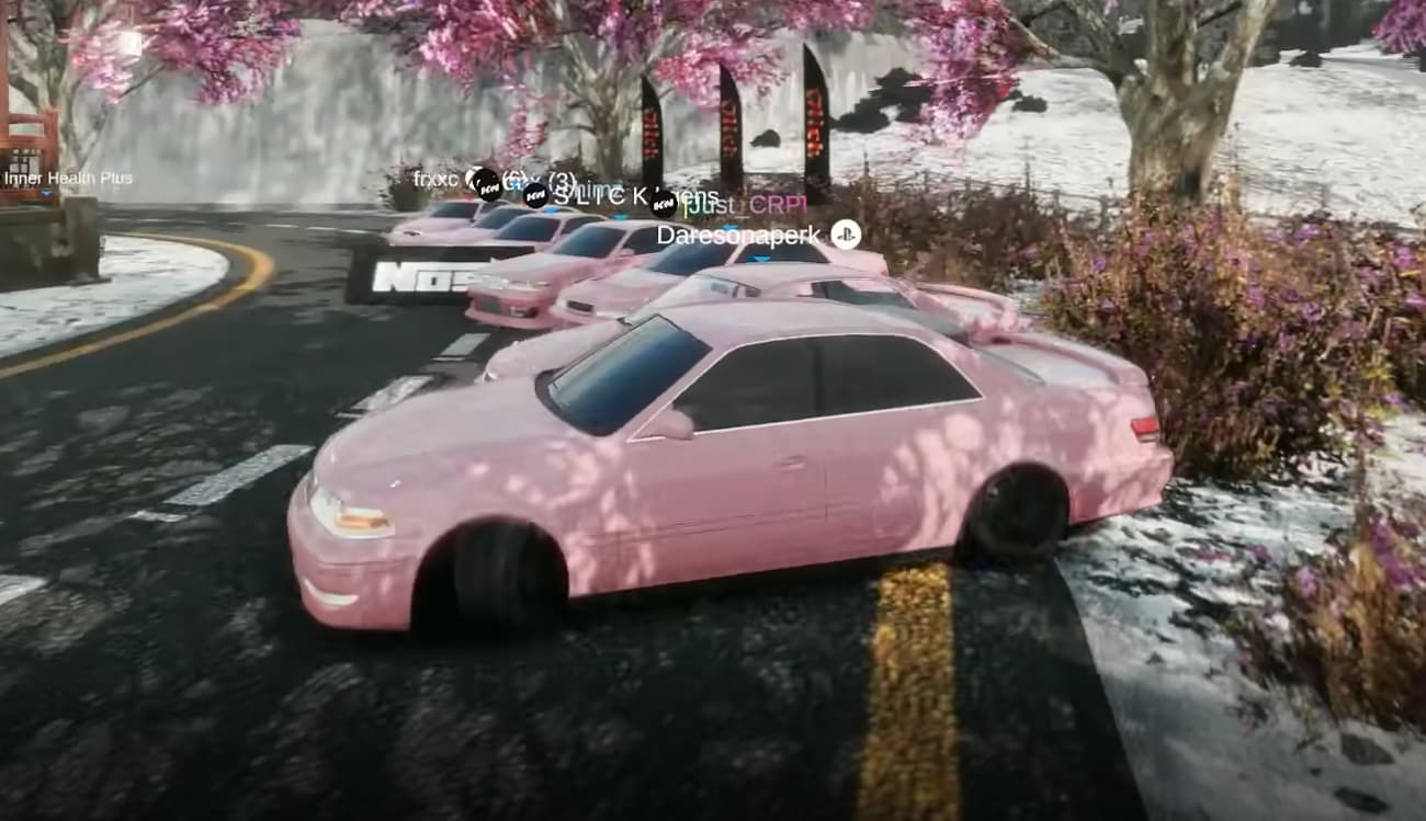 Closer camera that lets you focus more on your car and line but still be able to see the car next to you. Camera rotation and movement is tweaked so it’s easy to control the car.