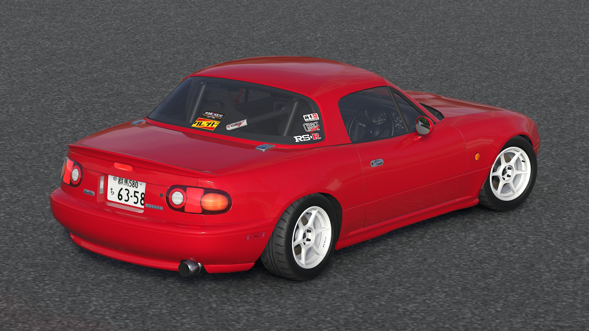 a bundle of my old NA stuff, but theres plenty new stuff too haha. in this bundle you will find a chassis with small rear plate garnish, both lhd and rhd, rhd interior wich haz all the functionality such as needles and emissions (wich are now green as they should be) working, all lights besides pop ups are now new and the tails are decalable, trunk with third brake light, oem lip kit, front chargespeed halfbumper, paintable half cage, and various fixes here and there.