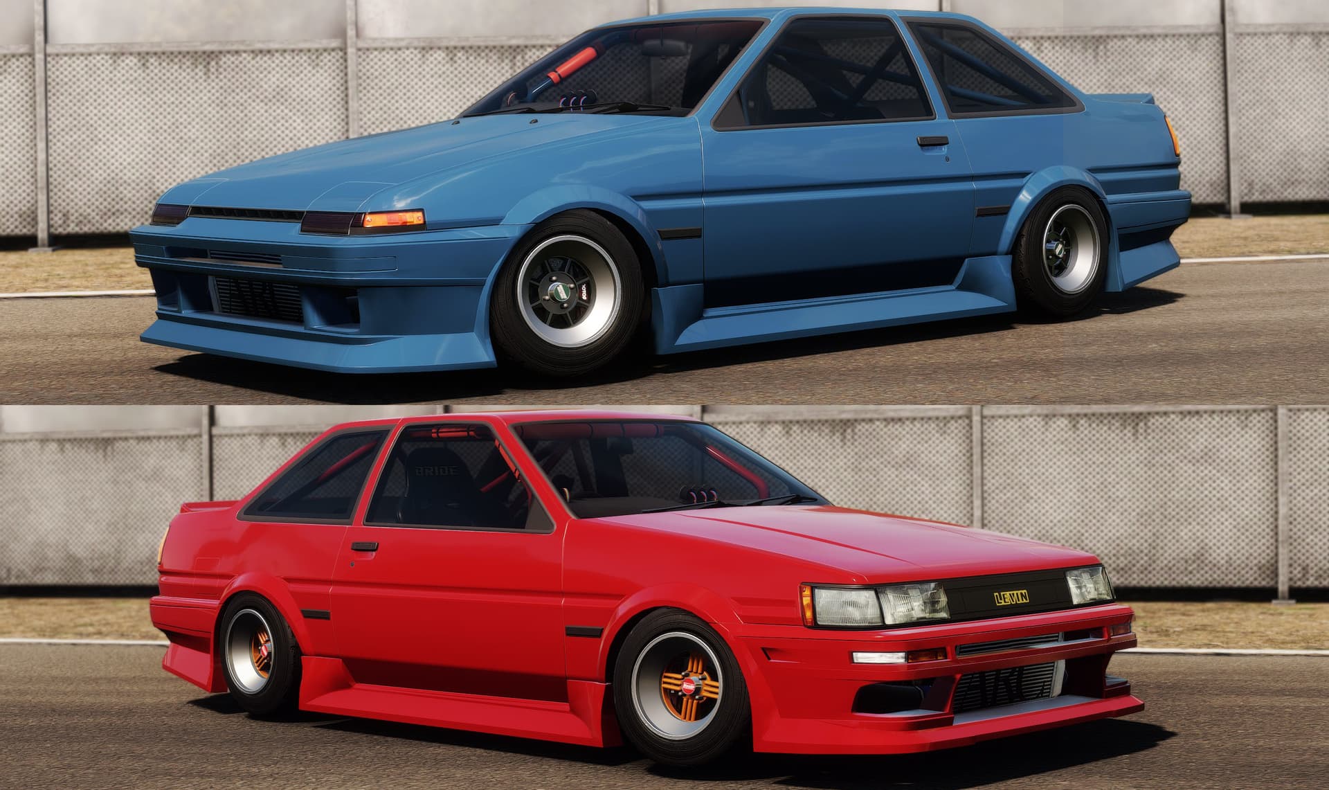 Bodykits sourced from San Andreas mods, reworked by myself. All variations of both shapes of AE86 are covered.